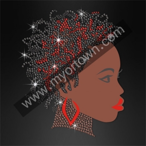 Wholesale ISS Black Woman with Earring Rhinestud Decal DIY Iron-On Hotfix Bling for T shirt wholesale price