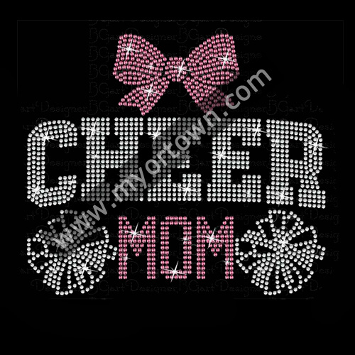 Pink Cheer Mom Rhinestone Iron on transfer Bling Custom Motif Rhinestone Heat Transfer