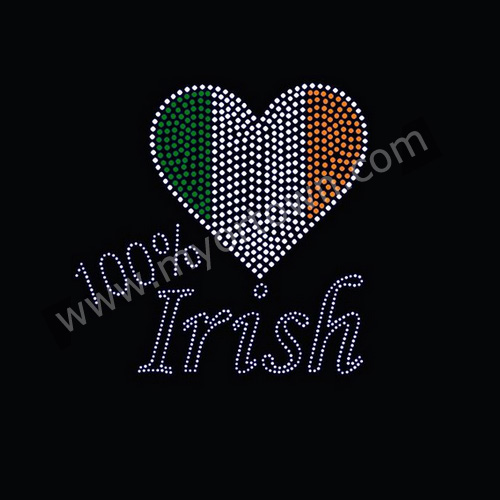 100% irish hotfix Rhinestone Iron on heart Rhinestone Transfer wholesale rhinestone heat transfers, Wholesale 30pcs/lot