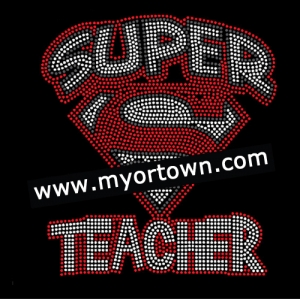 Wholesale Custom Super Teacher Design rhinestone transfer iron on motif