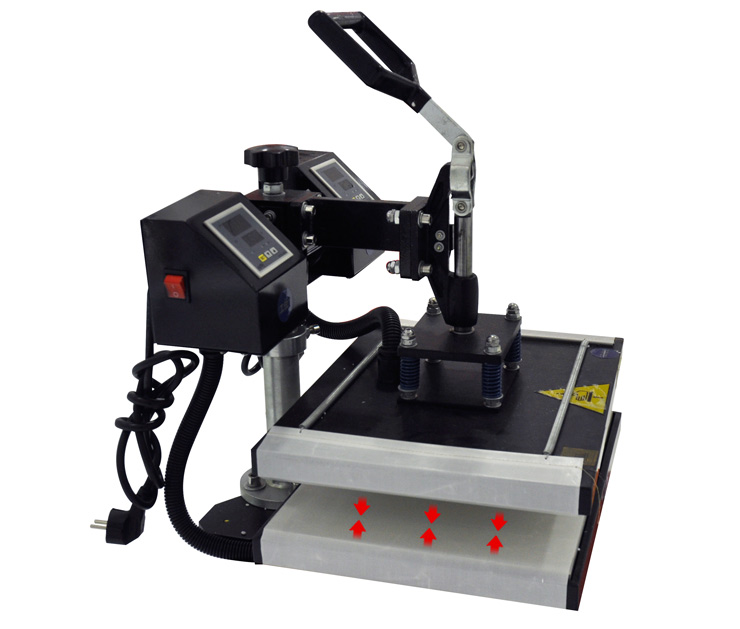 Double side printable machine with two heating flats, that means the double sides sublimation flat blanks can be printed by this machine at the same time. And these two heating flats belong to two independent control system, it's easy to set different temperature and pressure on each flat when operate this machine that fit for all kinds of sublimation flat blanks.