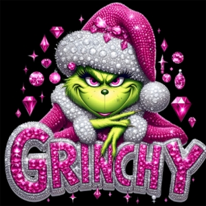 Grinchy Pink Gemstone Diamond Xmas Christmas - custom DTF transfer 30pcs