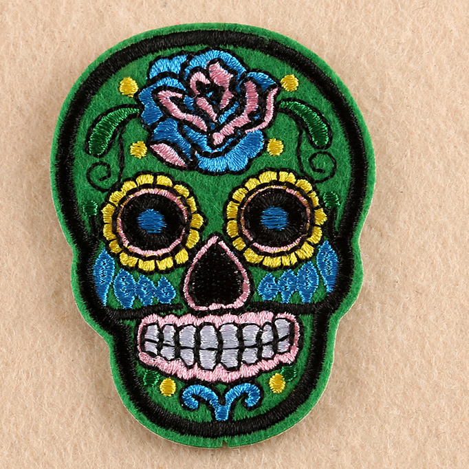 Green Skull Embroidery Patch design Wholesale 30pcs/lot