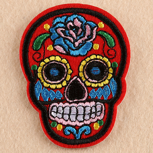Red Skull Embroidery Patch design Wholesale 30pcs/lot
