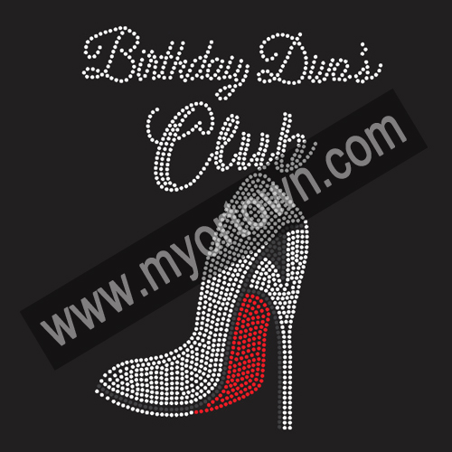 Birthday Divas club heel Iron On Rhinestone Design Bling design DIY Iron-On Hotfix Bling for T shirt wholesale price