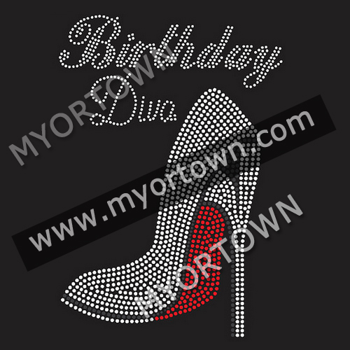 Birthday Divas heel Iron On Rhinestone Design Bling design DIY Iron-On Hotfix Bling for T shirt wholesale price