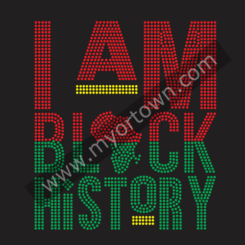 Custom I am Black History Rhinestone Transfer,We guarantee Highest Quality Machine Cut 100% Clear Crystal Rhinestones in all of our Rhinestone transfer designs. Print on T-shirts, Tank Tops, Hoodies, Tote bags, Hats, Caps and Fabric etc.