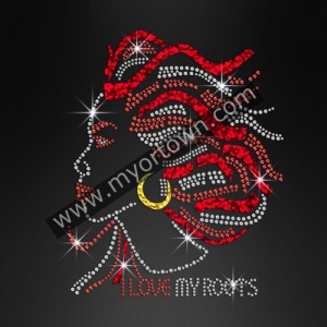 I Love My Roots Afro Girl Iron on glitter Rhinestone Transfer Decal for T shirt wholesale price