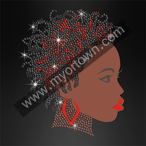 Wholesale ISS Black Woman with Earring Rhinestud Decal DIY Iron-On Hotfix Bling for T shirt wholesale price