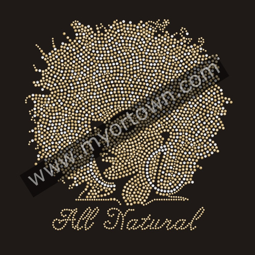 Custom Afro Natural Lady Korean rhinestone Material Iron-on transfer applique Design Wholesale Design for t shirt for t shirt wholesale rhinestone heat transfers, Wholesale 30pcs/lot