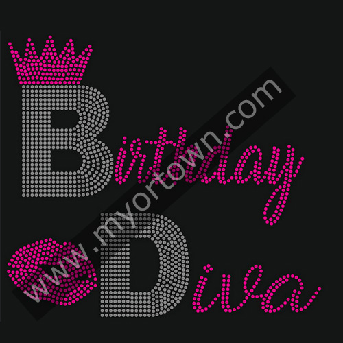 Birthday diva Rhinestone Iron On Transfer Hot Fix Bling for T shirt wholesale price