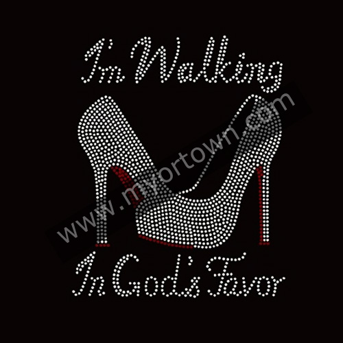I'm Walking in God's Favor Heel Stiletto Rhinestone Iron on Bling Design wholesale rhinestone heat transfers, Wholesale 30pcs/lot