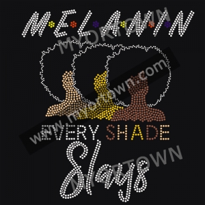MELANIN EVERY SHADE Slays Lady Rhinestone Iron-on Transfer Motif