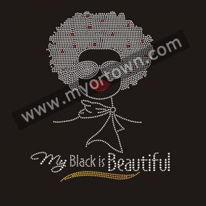 My Black Is Beautiful Afro girl Rhinestone Iron On Heat Transfer, wholesale rhinestone heat transfers, Wholesale 30pcs/lot
