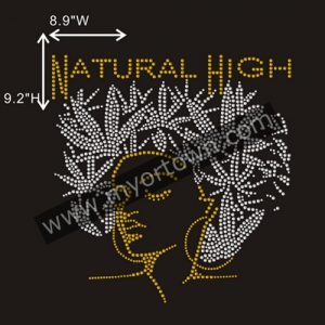 Natural High Afro Lady Rhinestone Transfer Motif Iron on Hot Fix Designs for t shirt for t shirt wholesale rhinestone heat transfers, Wholesale 30pcs/lot