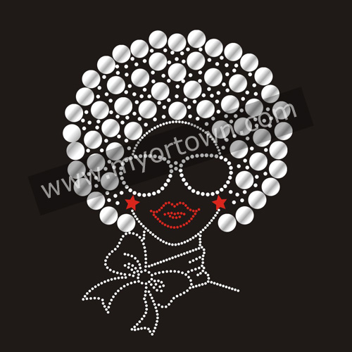 Wholesale Afro Girl sliver nailheadHeat Transfers Motifs for Celebration wholesale Rhinestone heat transfers, Wholesale 30pcs/lot
