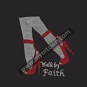 Wholesale Walk by faith girl rhinestone transfer iron on motifs wholesale rhinestone heat transfers, Wholesale 30pcs/lot