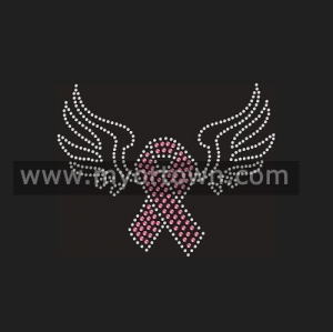 Angel wing breat cancer rhinestone transfer for hat,Rhinestone Transfer Iron On Applique For T-Shirt Hoodies or Garments! Be exquisite in designs and competitive in prices.