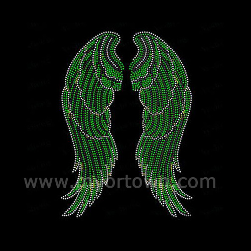 Double green wings custom rhinestone design  For T-Shirt Hoodies or Garments! Be exquisite in designs and competitive in prices.