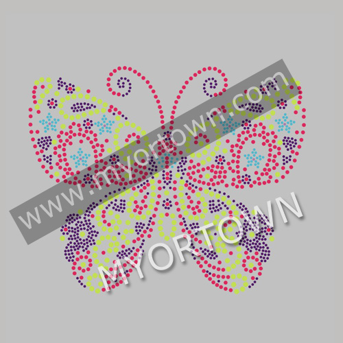 Custom Butterfly Korean Neon rhinestud Material Iron-on transfer applique Design Wholesale Design for t shirt for t shirt wholesale rhinestone heat transfers, Wholesale 30pcs/lot