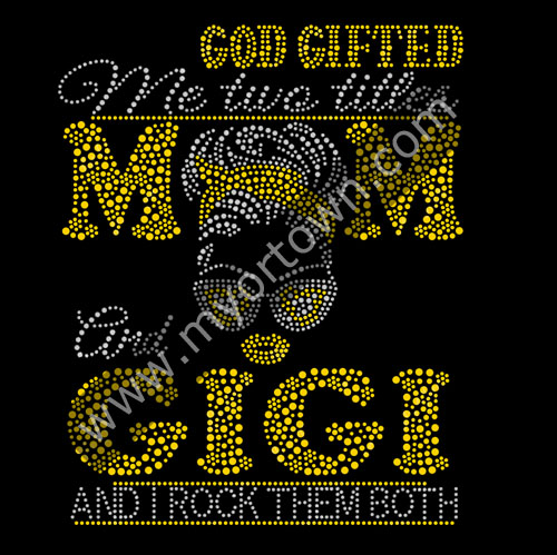 God Gifted Me Two Titles Mom And GIGI Bling Rhinestone Motif iron On Rhinestone transfer