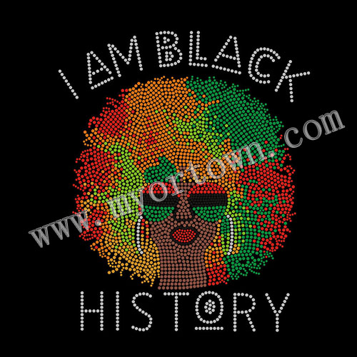 Pan-African Afro "I Am Black History" Rhinestone Transfer 30pcs