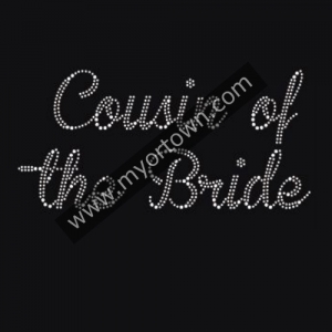 Whloesale Clear Cousin of the bride rhinestone Iron-on Transfer design, wholesale rhinestone heat transfers, Wholesale 30pcs/lot