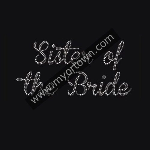 Whloesale Clear Sister of the bride rhinestone Iron-on Transfer design, wholesale rhinestone heat transfers, Wholesale 30pcs/lot