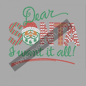 Dear Santa I Want It All Iron on Rhinestone Transfer Motif Wholesale Design for t shirt for t shirt wholesale rhinestone heat transfers, Wholesale 30pcs/lot