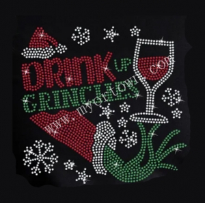 Drink Up Grinches Rhinestone bling hotfix iron on Rhinestone transfers