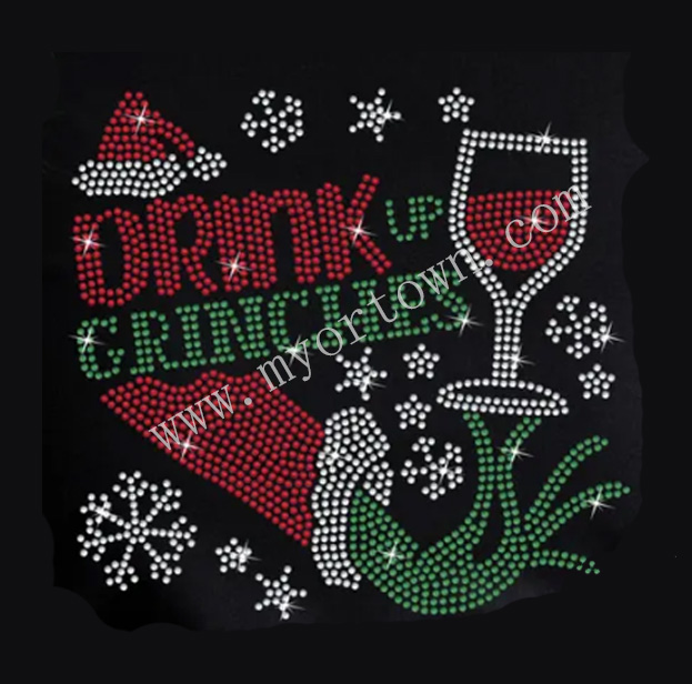 Drink Up Grinches Rhinestone bling hotfix iron on Rhinestone transfer 30pcs