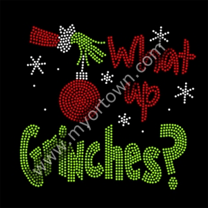 What up Grinches Christmas Rhinestone Heat Transfer 30pcs