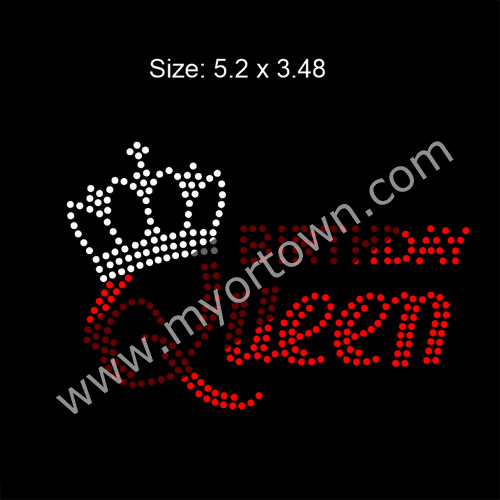 Small Bling Birthday Queen Iron on Rhinestone Transfer for mask, Wholesale 30pcs/lot