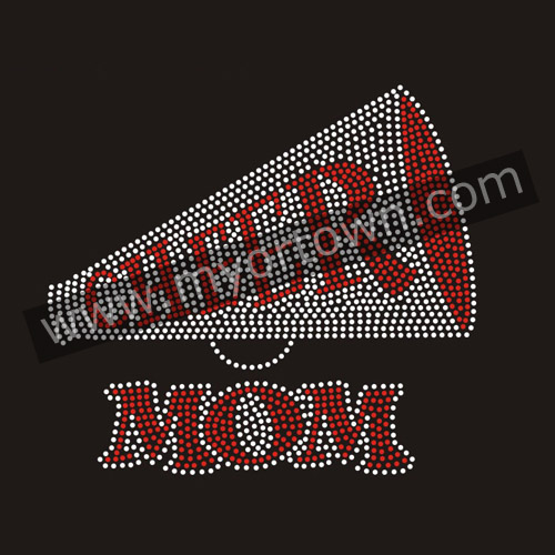 Siam Ruby Cheer Mom Iron On Rhinestone Wholesale Hotfix Bling Ribbon Transfer