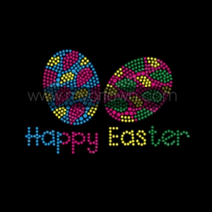 Happy easter colorful rhinestone transfer Iron-On Motifs Dsigns For T shirt wholesale rhinestone heat transfers, Wholesale 30pcs/lot