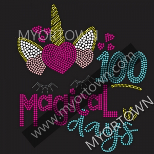 100 Magical days Rhinestone Transfer Motif Iron on Hot Fix Designs for Garment We guarantee Highest Quality Machine Cut 100% Clear Crystal Rhinestones in all of our Rhinestone transfer designs. Print on T-shirts, Tank Tops, Hoodies, Tote bags, Hats, Caps and Fabric etc.