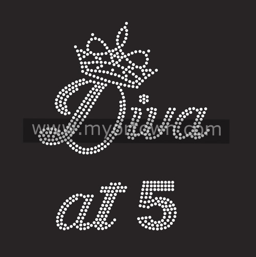 Custom Diva at 5 rhinestone transfer design, wholesale rhinestone heat transfers, Wholesale 30pcs/lot
