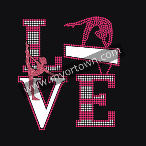 Wholesale Love gymnasts rhinestone&glitter transfer for T shirt wholesale price