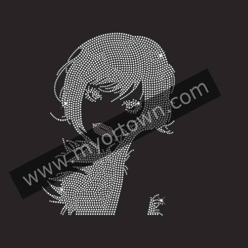 Long-hair lovely girl Iron on Rhinestone Transfer Decal Iron on Rhinestone Transfer Decal
