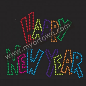 Happy New Year Rhinestone Iron On Transfer Hot Fix Bling for T shirt wholesale price