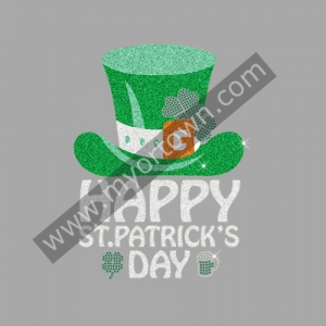 Custom Happy ST. pat’s with rhinestone & glitter Iron-on transfer applique Design Wholesale Design for t shirt for t shirt wholesale rhinestone heat transfers, Wholesale 30pcs/lot