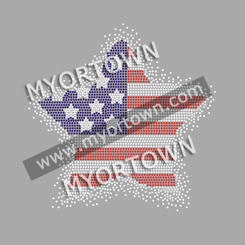 star Happy 4th of July Usa flag Iron On Rhinestone Design Bling design DIY Iron-On Hotfix Bling for T shirt wholesale price