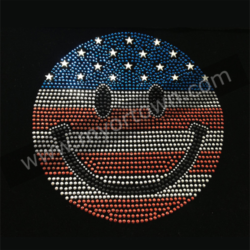 Rhinestud Transfer USA Smily Face 4th of July Happy face Iron On design for t-shirt wholesale Rhinestud heat transfers, Wholesale 30pcs/lot