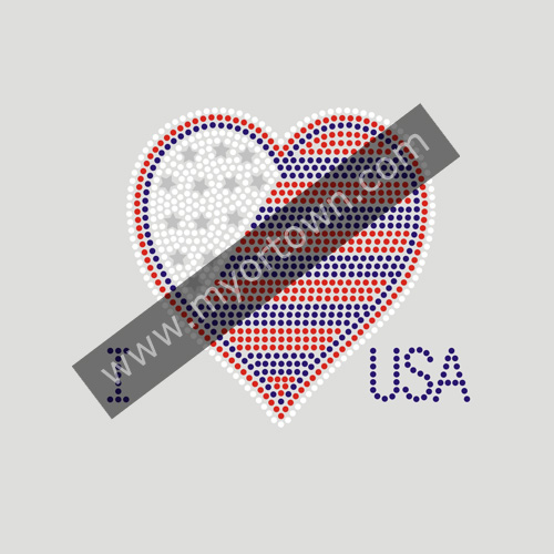 USA FLAG HEART Rhinestone Iron On Transfer Hot Fix Bling wholesale rhinestone heat transfers, Wholesale 30pcs/lot