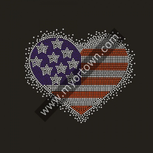 Wholesale US Flag heart rhinestone transfer for T shirt wholesale price