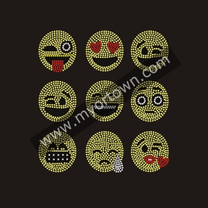 Gold Shining Faces Iron-on Rhinestone Transfer Design For T shirt wholesale Rhinestud heat transfers, Wholesale 30pcs/lot