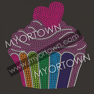 Wholesale Rainbow SWEET CUPCAKE designs rhinestone Transfer Iron-On Hotfix Bling for T shirt wholesale price