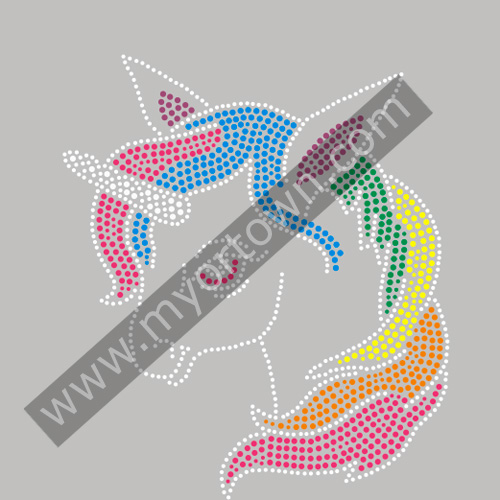 Wholesale Rainbow unicorn Korean Neon Stud Transfer Iron-On Hotfix Bling for T shirt wholesale price
