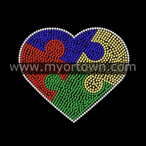 Autism Heart Rhinestone Iron On Transfer For Tshirts Iron On Transfer Wholesale 30 pcs/lot