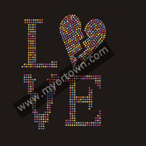 Custom Bling Love Valentine Rhinestone Transfer Iron On Hotfix Bling for T shirt wholesale price